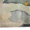 A unique patchwork-style design resembling the birds eye view of a coastline makes for an artistic accent in your home