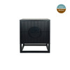 A ribbed texture and bold geometric shapes make this bedside table an eye-catching accent piece.