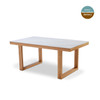 The natural charm of the elm timber legs perfectly complements the contemporary design, adding warmth and character to any dining area.With its spacious surface, the Monaco Ceramic Dining Table provides ample room for family gatherings, dinner parties, and everyday meals, making it a versatile centerpiece for your home.